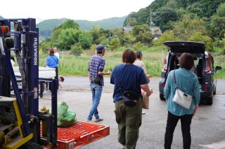 | 米作りの締めくくりは収穫祭⇒中止 10月5日(日)の12時頃から、オーナー宅前庭をお借りして、新米のおにぎりをみんなで味わう収穫祭を行うはずが・・・あいにくの雨。残念ながら中止となり、新米購入者への受け渡しのみになりました。 今シーズンは実りの秋に天候不順で稲刈りも収穫祭も中止! |
