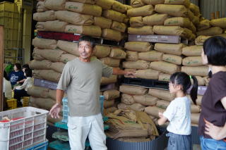 | 刈り取りが済み、新米が山積みされた原田ふぁーむさんの倉庫。猫の手米はごく一部だけどね(^^;) 猛暑・酷暑も稲にとってはプラス? | 例年は秋空の下、里山で新米おにぎりと一品持ち寄りの野外パーティーを楽しむのだが・・・雨で中止(>_<) 昨年の様子をどうぞ! |